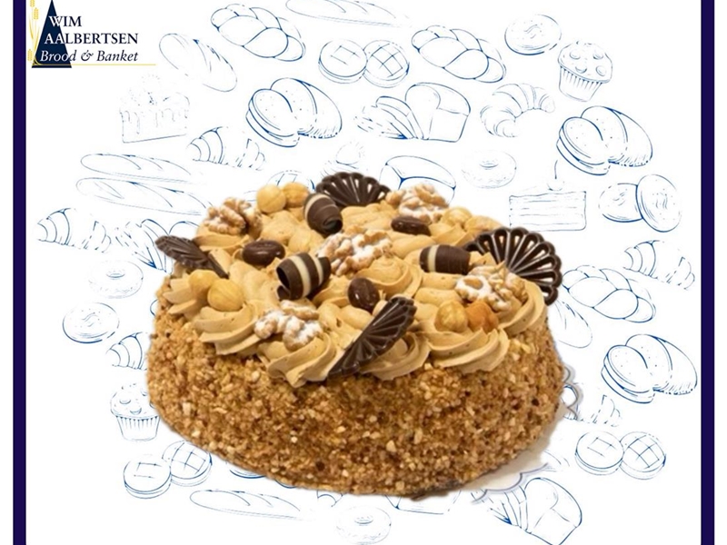 Onze marsepeintaart is een decadente verwennerij! Met een luchtige cakebodem, een zachte laag amandelmarsepein en een romige vulling, biedt deze taart een perfecte balans tussen zoet en verfijnd. Afgewerkt met een mooie laag marsepein en een subtiele amandelsmaak, is dit de ideale keuze voor een feestelijke gelegenheid of een luxe traktatie.